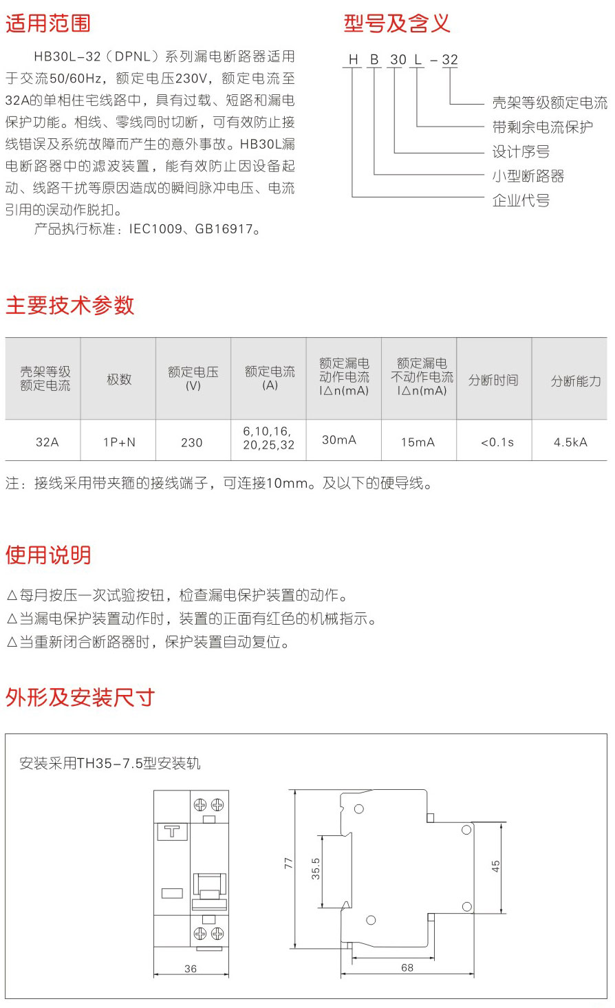 HB30L-32系列 相線+中性線+漏電 斷路器
