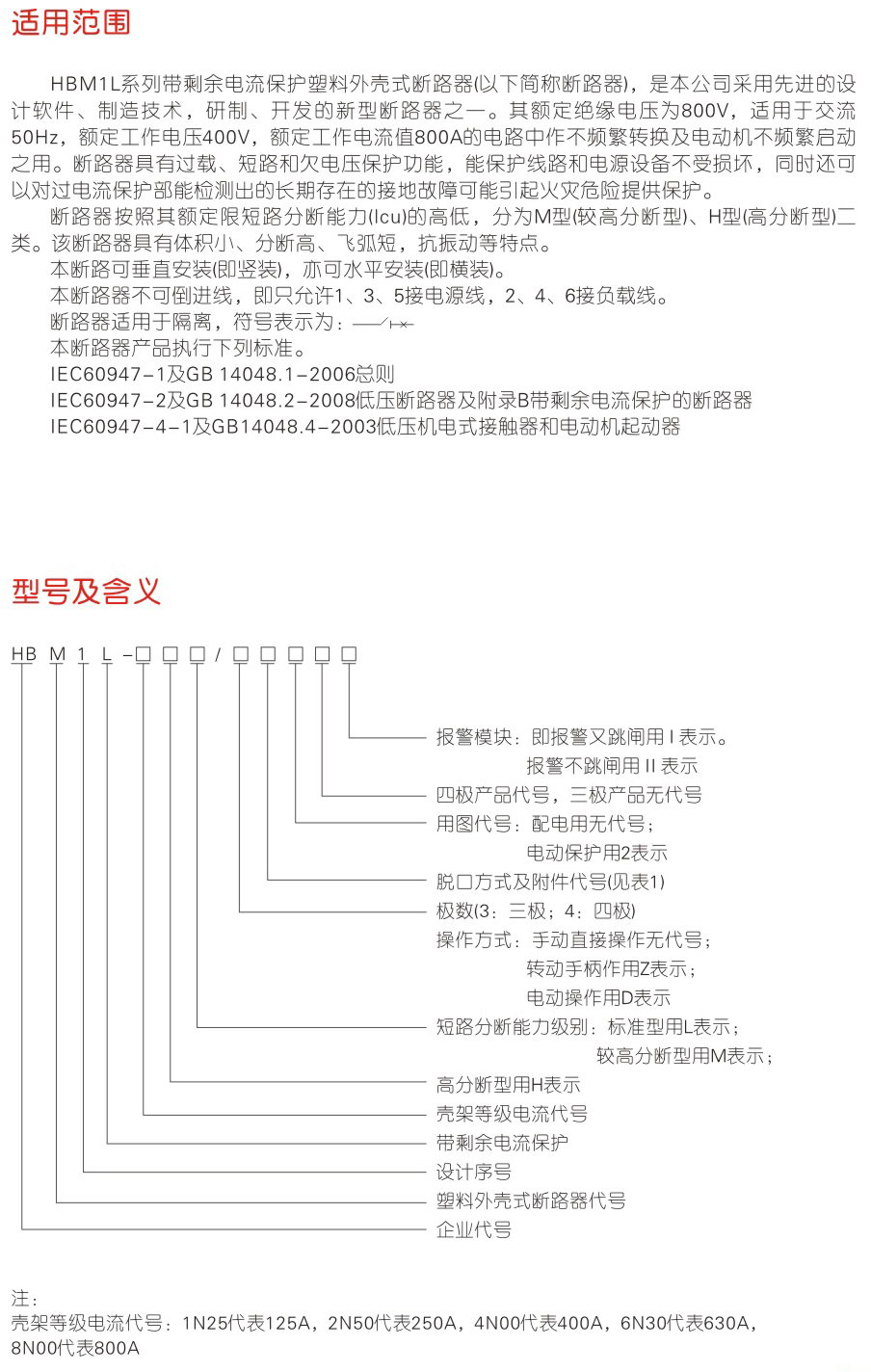 HBM1L系列帶剩余電流保護(hù)塑料外殼式斷路器