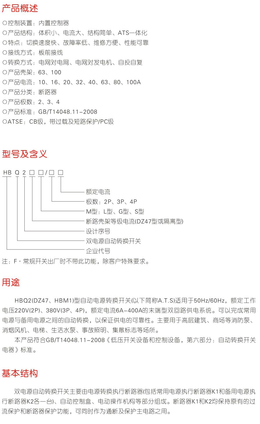 HBQ2(末端型)系列雙電源自動(dòng)轉(zhuǎn)換開關(guān)