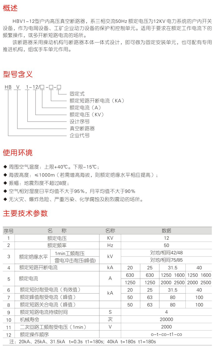 HBV1-12系列固定式戶內(nèi)高壓真空斷路器