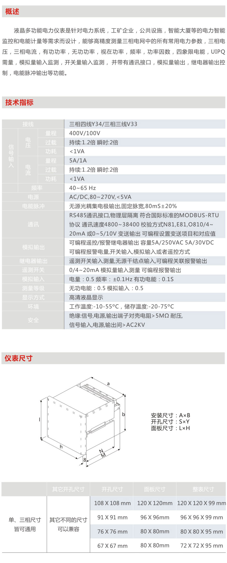 液晶多功能電力儀表